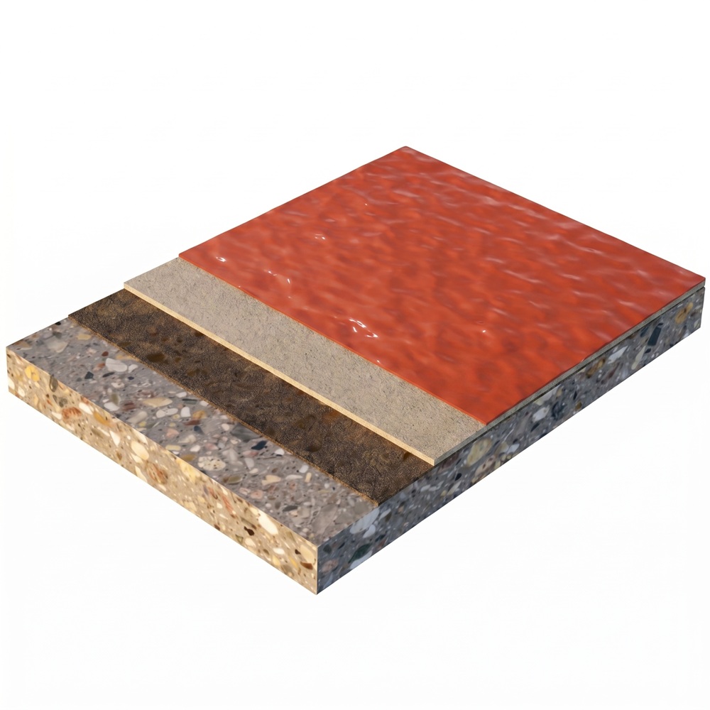 Полимерное высоконаполненное покрытие на основе эпоксидных смол, с окрасочным цветным финишным слоем, текстурная поверхность, толщиной 2,0мм.